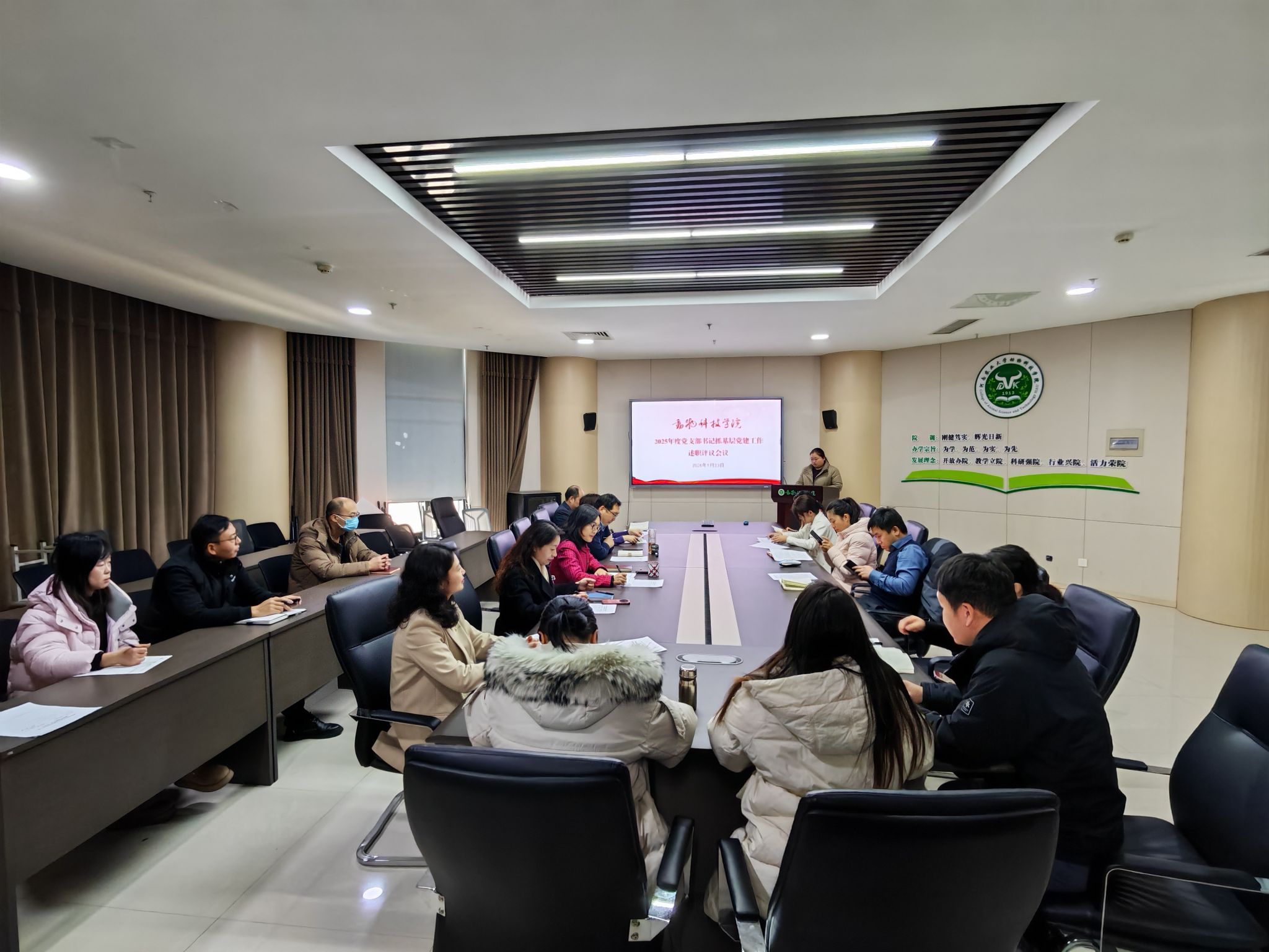 会上,各教工党支部书记依次上台述职。行政中心实验室党支部以“党建引领实验室规范化建设与高质量服务”为目标,通过多样化学习深化党建与业务融合,圆满完成实验教学和行政管理各项任务;动物营养与饲料科学系党支部打造“党建+教学科研+社会服务”工作模式,依托学科优势开展科技特派员服务,助力乡村振兴,科研创新成果丰硕;动物生产与智慧牧业系党支部以政治建设为统领,严格落实理论学习制度,党建融合畜牧产业发展,指导学生在学科竞赛中斩获多项特等奖;动物遗传育种与繁殖系党支部坚持理论学习常态化,联合企业开展主题党日活动,党建与业务深度融合,教学科研成果斐然,荣获“全国黄大年式教学团队”等多项荣誉;水产与经济动物养殖系党支部以“1+3+1”特色党建模式为引领,学生在学科竞赛中荣获国赛特等奖,科研服务项目与学术论文成果显著。