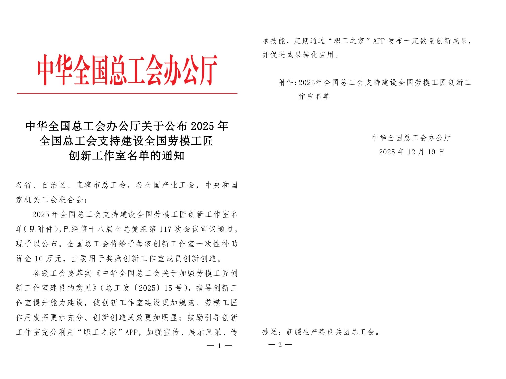 全国劳模工匠创新工作室是弘扬劳模精神、劳动精神、工匠精神的重要载体,也是推进技术创新、培育高素质人才的重要平台。全国总工会将给予创新工作室一次性补助资金10 万元,用于奖励创新工作室成员创新创造。此次获批支持建设,是对工作室已有成绩的肯定,也为工作室未来发展提供了重要机遇。下一步,工作室将继续聚焦国家战略与产业需求,进一步深化科研创新,强化人才培养,拓展社会服务,努力建设成为具有示范引领作用的高水平创新平台,为学校发展和行业进步贡献更多力量。